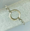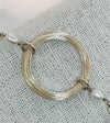 This simple and classic light weight bracelet features a Sterling Silver wire frame and a single strand of little white pearls. Truly understated elegance.